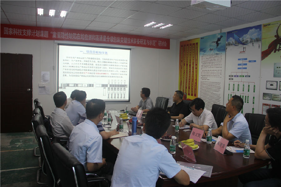 為推進(jìn)國(guó)家科技支撐計(jì)劃課題的研究進(jìn)展,交流課題研究中的問(wèn)題,進(jìn)一步落實(shí)下一步工作,國(guó)家科技支撐計(jì)劃課題“禽蛋隱性缺陷在線檢測(cè)和高通量分級(jí)包裝關(guān)鍵技術(shù)裝備研發(fā)與示范” 2017 年項(xiàng)目研究交流會(huì)于5月12日-13日在深圳市振野蛋品智能設(shè)備股份有限公司順利召開,各課題組負(fù)責(zé)人蔣煥煜、陳文凱、蔡健榮、王劍平、徐惠榮、饒秀勤、盧九生、俞永華等專家教授分別做了項(xiàng)目進(jìn)展情況匯報(bào)和交流。浙江大學(xué)副校長(zhǎng)應(yīng)義斌教授在交流會(huì)議上做了重要指示。