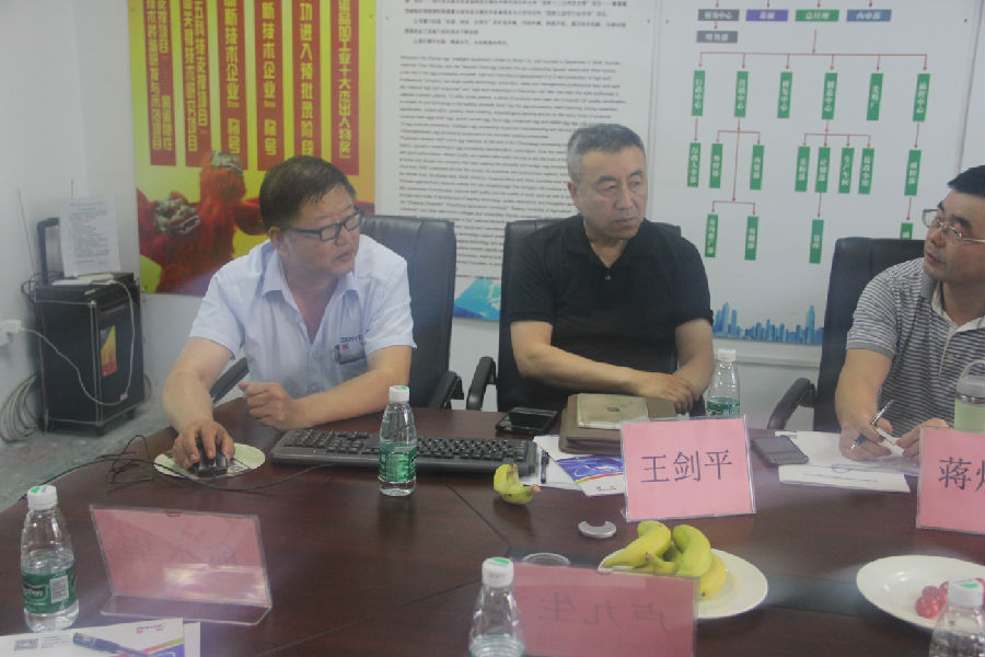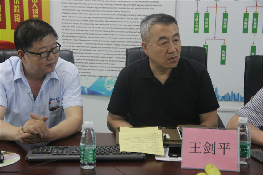 深圳市振野蛋品智能設(shè)備股份有限公司盧九生總工程師(左一)做項(xiàng)目進(jìn)展情況總結(jié)交流